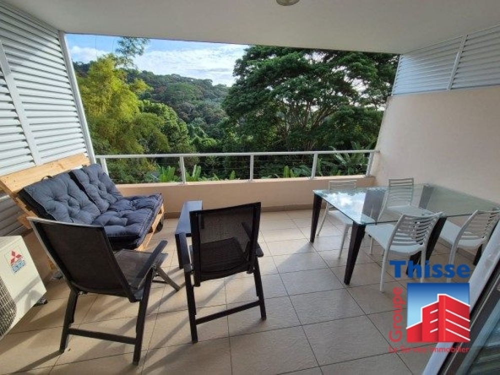 L'appartement dispose d'une terrasse couverte de 13m2 vue Mer et Moorea, il est loué avec une place de parking sécurisée.