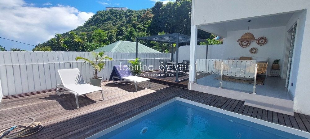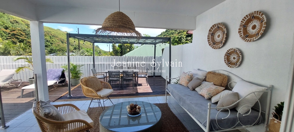 Punaauia, vallée de Matatia, hors lotissement, ravissante maison de type F4 jumelée de 90 m2 entièrement rénovée sur deux niveaux.