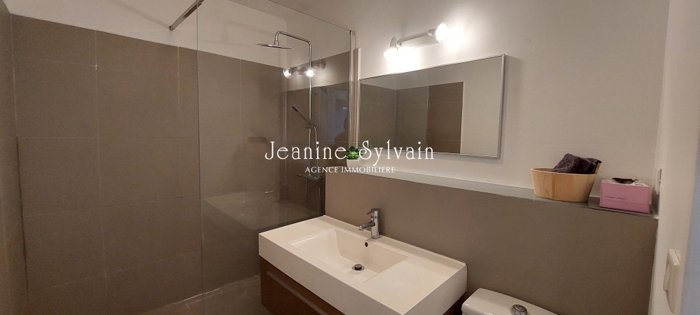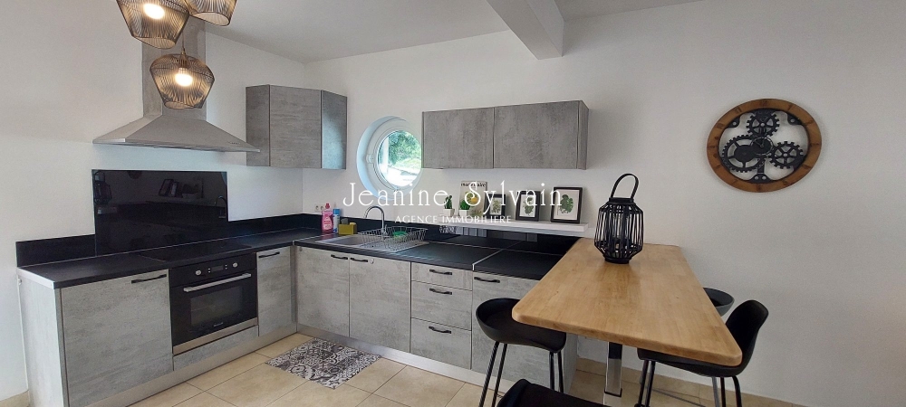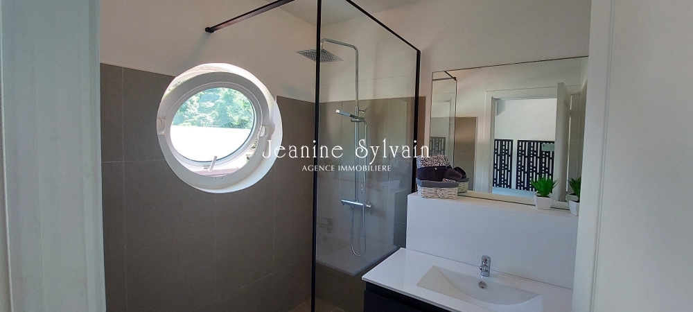 Elle est composée d'une cuisine équipée, un salon, une terrasse couverte très conviviale, de 3 chambres climatisées, de 2 salles d'eau, wc indépendant, grande terrasse en deck avec piscine. Abri jardin et portail automatique.