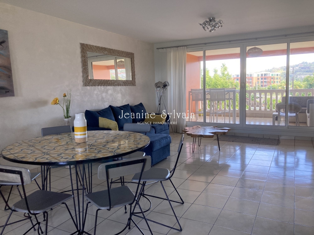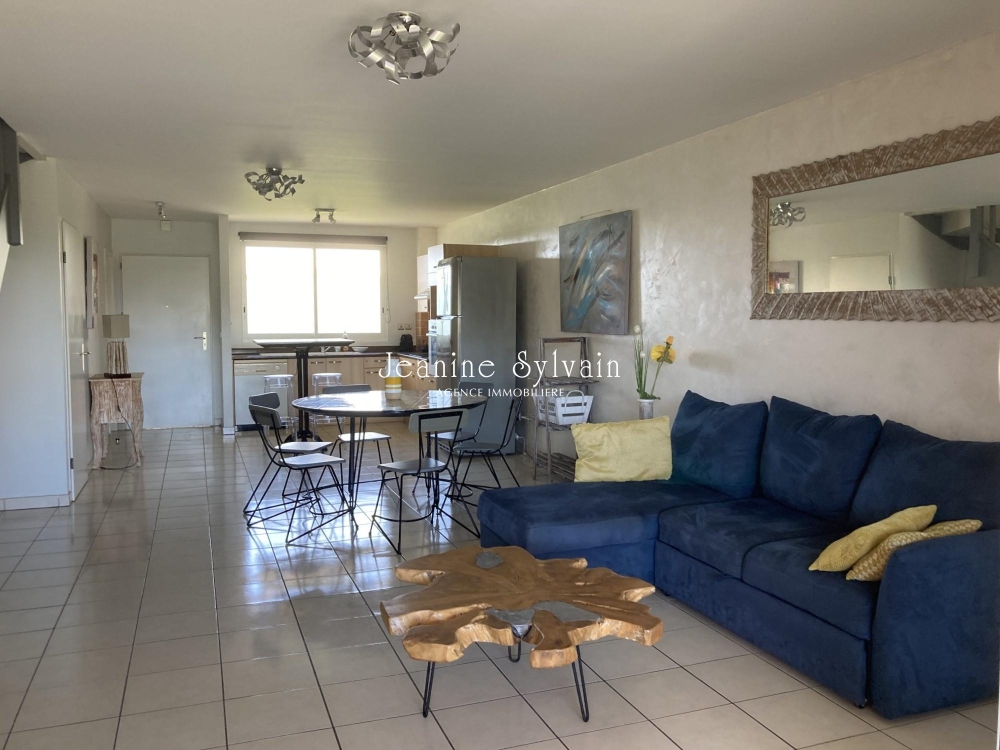 Dans une résidence prisée en bord de mer, sécurisée avec piscine, un bel appartement F3 en duplex comprenant :