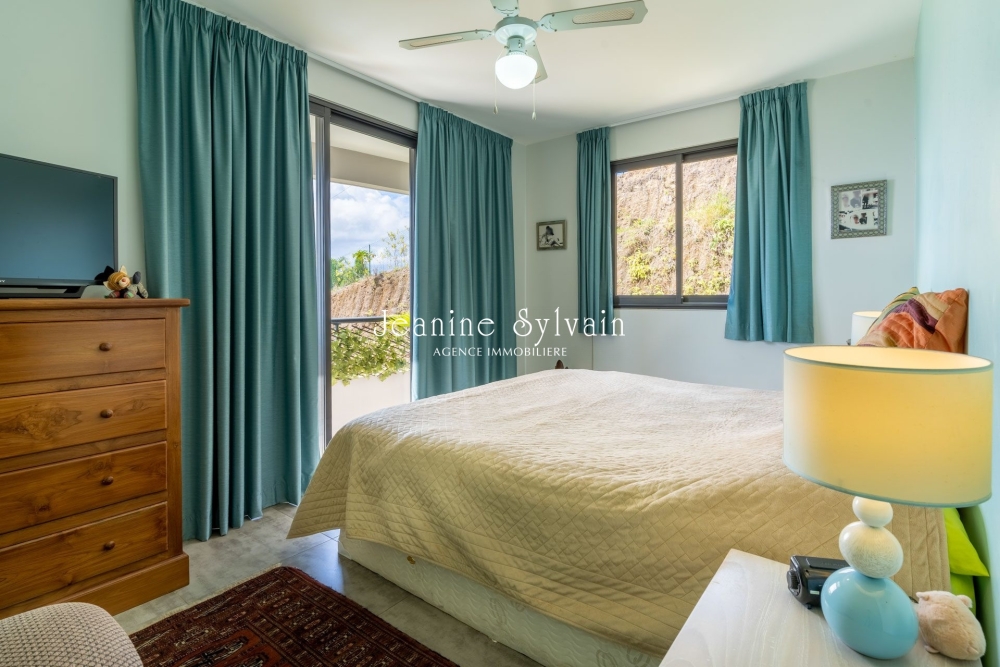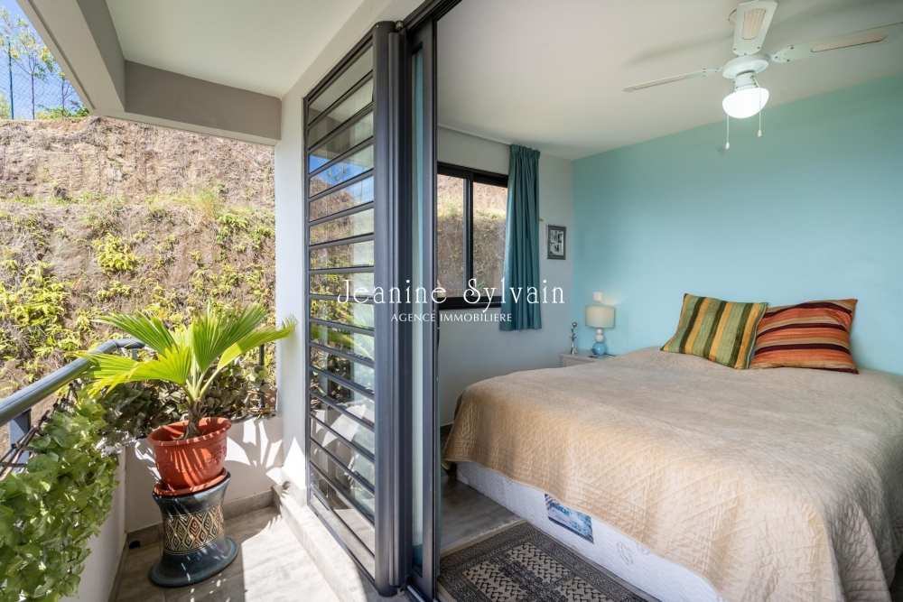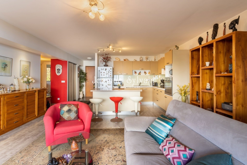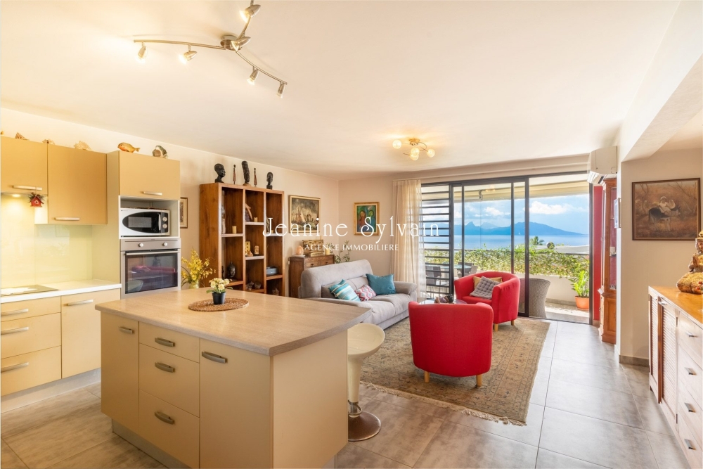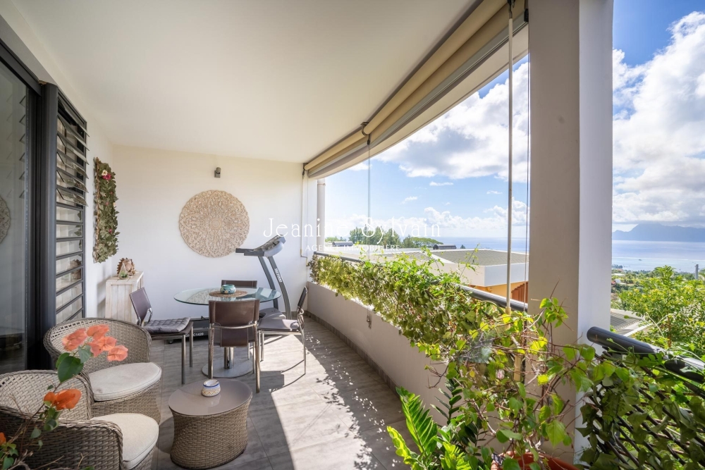 Sur le hauteurs de Faaa, St Hilaire, très bon environnement dans petite copropriété avec piscine, très calme et belle vue Moorea, F4 traversant au 1er étage avec ascenseur, comprenant une suite avec dressing et salle d'eau, et 2 chambres bien aérée, placard et salle d'eau, séjour donnant sur la terrasse couverte.
