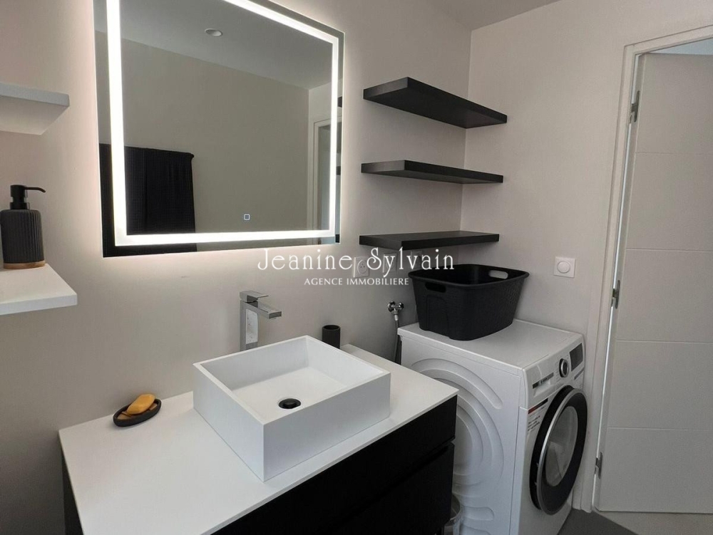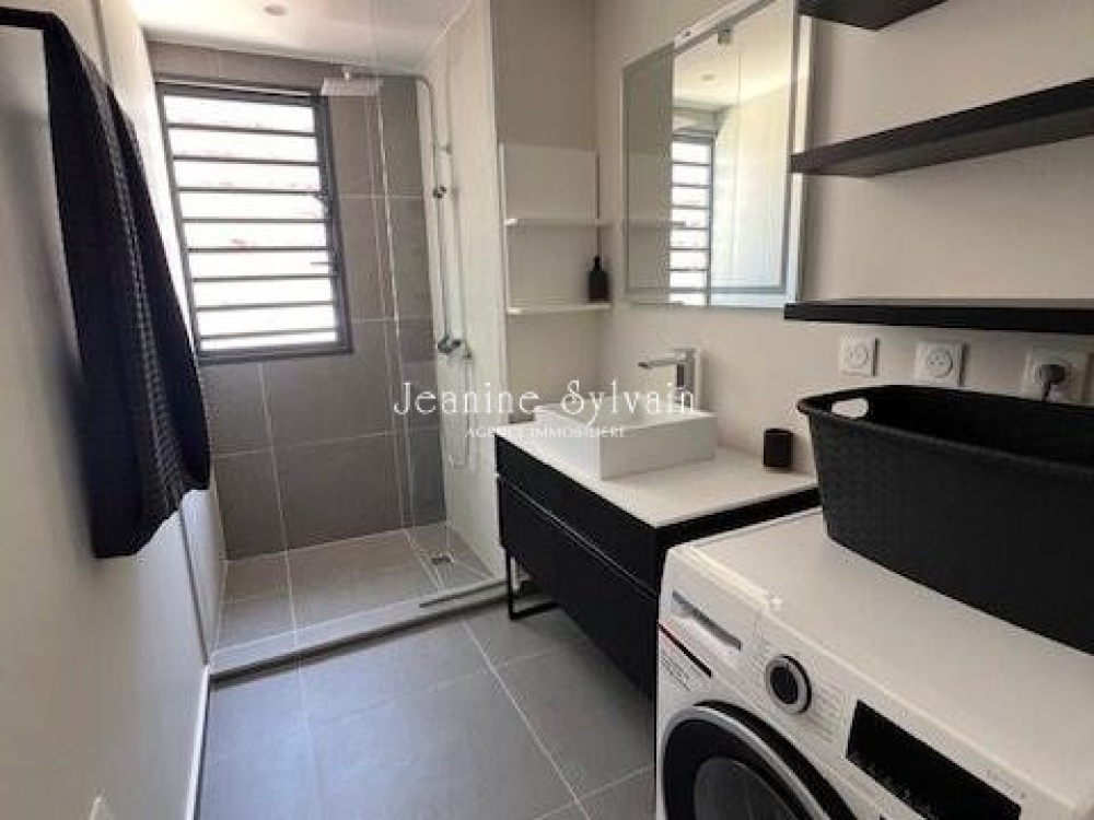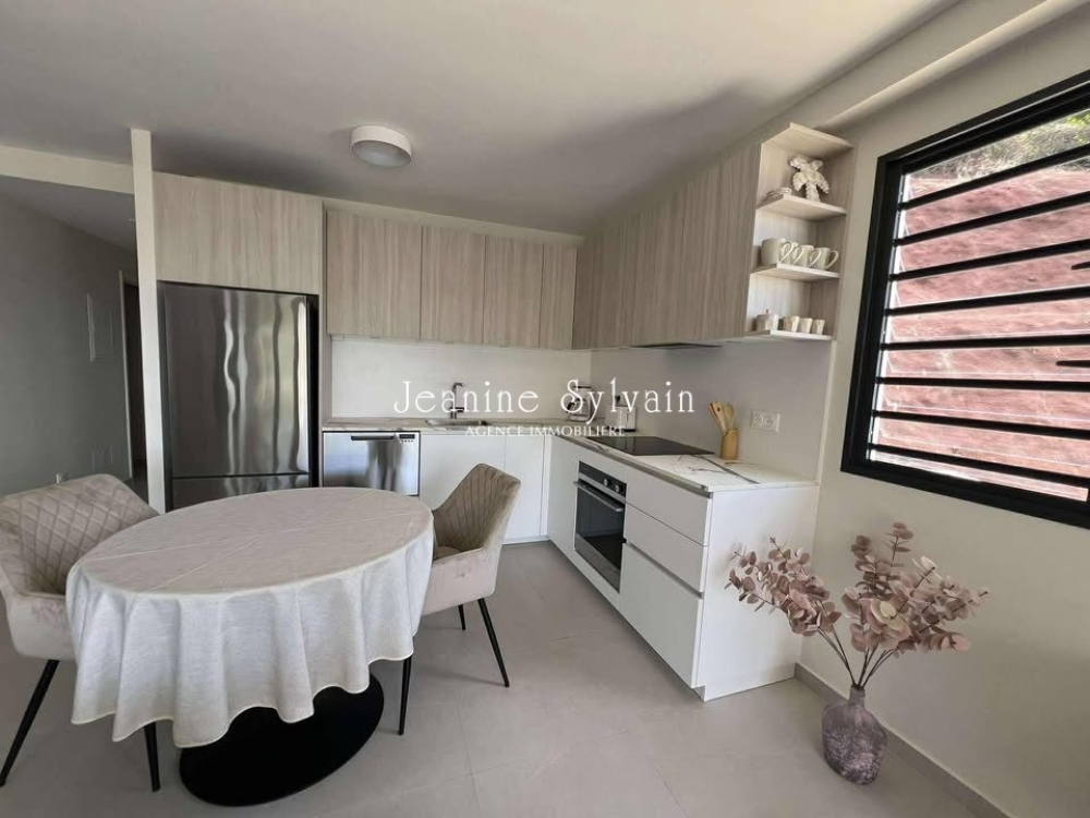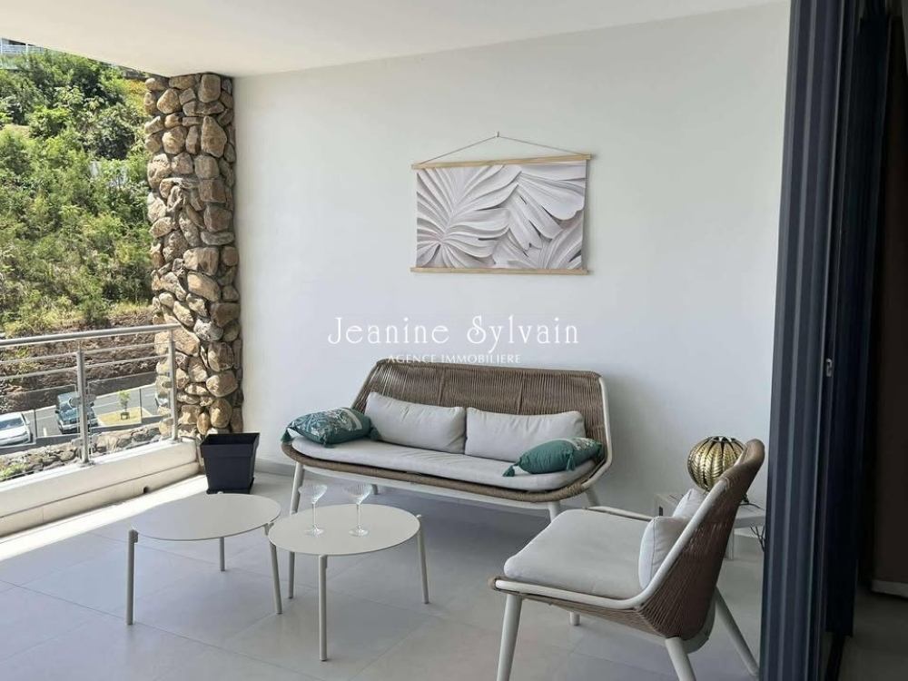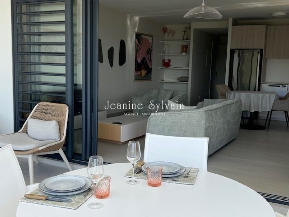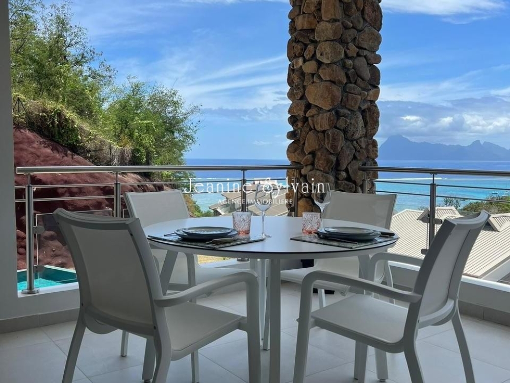 Punaauia, Tetevake, dans une résidence récente très convoitée, très bel F2 meublé avec goût de 60 m2, cuisine équipée moderne ouverte sur le salon, une chambre climatisée avec dressing, salle d'eau, wc indépendant, grande terrasse couverte de 20 m2 face au lagon et Moorea, une loggia à l'entrée avec rangements, une place de parking couverte avec borne.