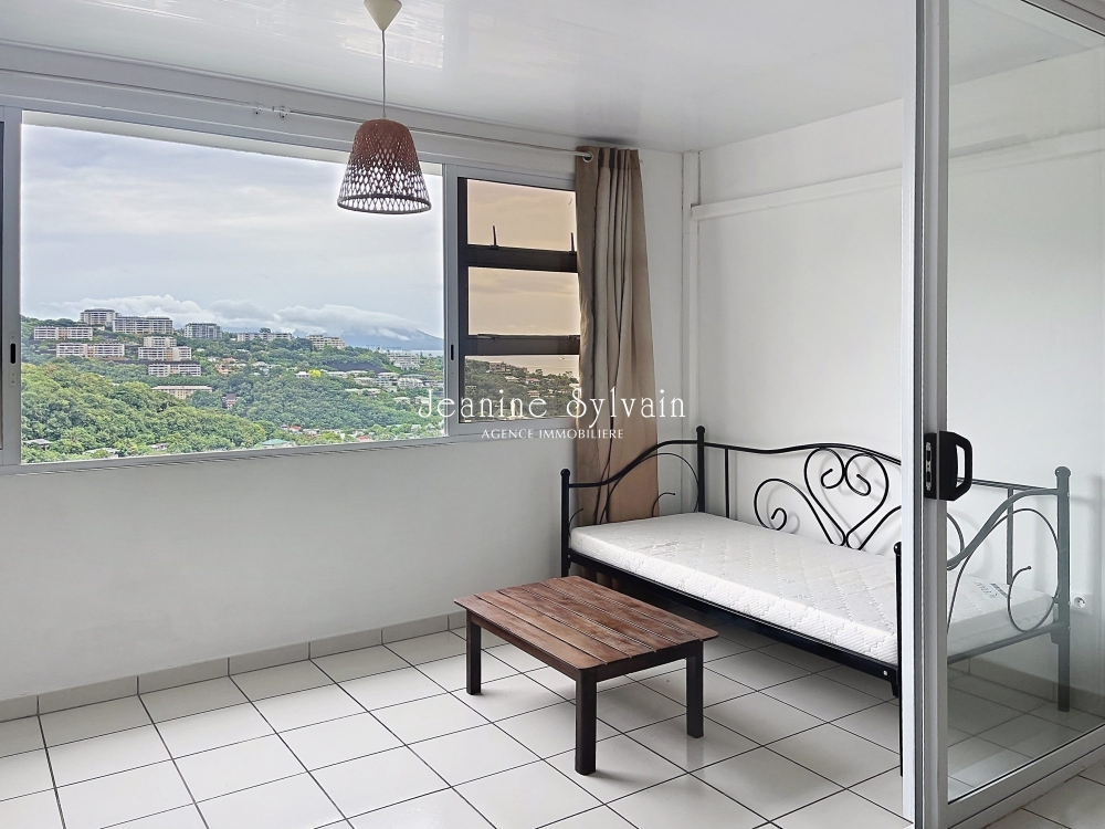 A l'entrée Ouest de Papeete, bel F2 spacieux avec parking couvert sur le même niveau, très facile d'accès, bien ventillé et lumineux, pièce principale séjour cuisine aménagée et équipée avec table bar centrale, terrasse couverte fermée, vue dégagée sur la mer, une chambre, salle d'eau. Meublé