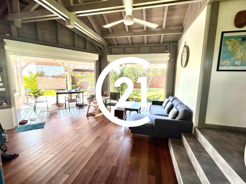 À l'extérieur : Profitez d'une belle terrasse de 30 m² menant à un jardin agrémenté d'arbres fruitiers. La piscine hors sol bénéficie d'une vue mer dégagée, sans vis-à-vis.