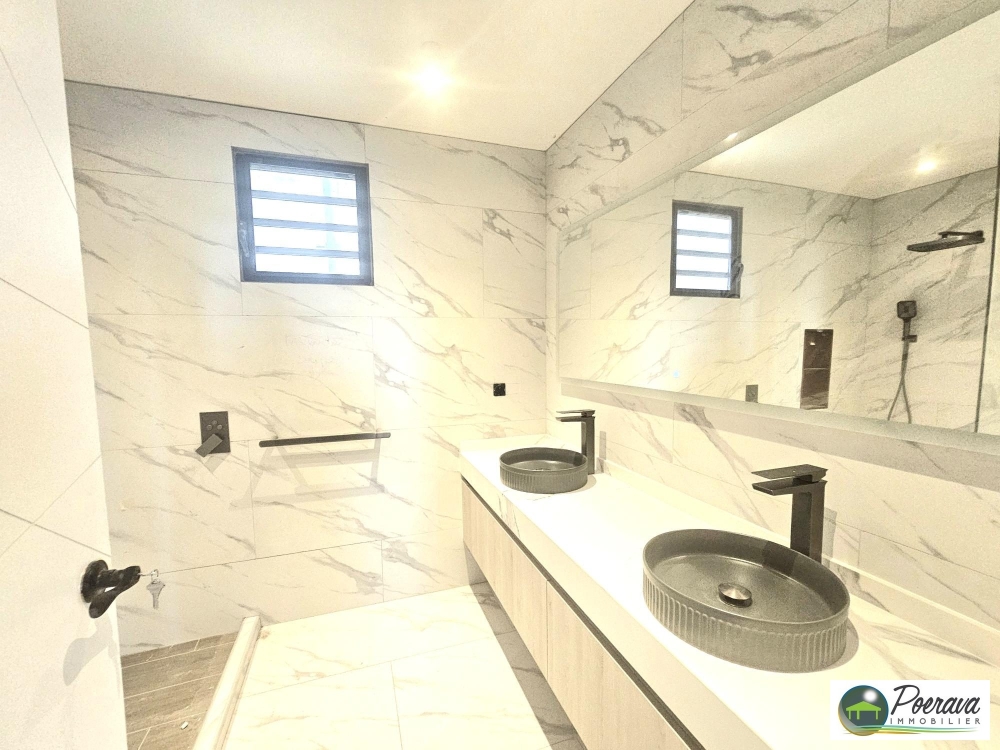 Découvrez cette villa neuve de standing, disponible sans attente, au coeur de Pamatai Hills. Offrant 154 m², elle séduit par son style moderne et sa vue dégagée sur la mer et le site archéologique.